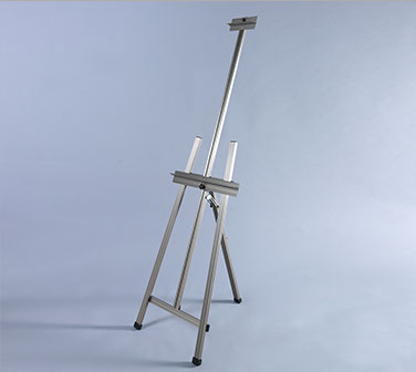 The Martin® Ambiente Dezign Aluminum Easel is a professional-grade aluminum easel that offers stability yet is lightweight. The fully adjustable back leg extends out to support larger gallery thick canvas at most reasonable angles and positions adjust and lock effortlessly with easy-grip knobs. The frame is reinforced with both rivets and screws for added strength and there is absolutely no assembly required! This easel folds easily for transport or storage and includes foot pads for enhanced floor stability. The Ambiente Dezign Easel will accommodate a canvas up to 39” in height, standard or gallery depth.