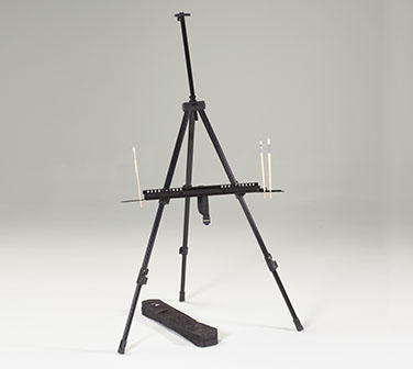The Martin® Integra Field Easel is constructed of lightweight metal, yet boasts a hefty appearance with its large dimension stock. This easel is stable, simple to fold into the included carrying case and at just 6 lbs, is easily transported making it ideal for plein air painting. The telescoping legs have retractable spikes for stability on the field and rubber feet to secure position in the studio. When legs are retracted to the lowest position, the Integra may also be used for tabletop use! Additional features include an adjustable upper and lower supports for canvases up to 57”, a brush bath holder and die cut slots for active brushes and tools.