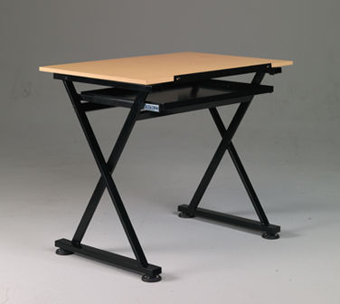 The Martin® KTX Drawing & Craft Table begins with a heavy gauge steel base with a cross-braced design for both durability and stability. We finish the base with a baked enamel finish in a rich ebony that not only compliments most interiors but will withstand years of use. The contemporary birch wood melamine top measures 24” x 36” and tilts from 0 - 70° with a simply operated one-hand tilt mechanism for easy adjustments. This table also features a convenient drawer beneath the surface to keep plans, documents, paper pads or rulers close at hand. Also included is a 24” sheet stop/pencil ledge to secure drawing instruments and papers even when top is tilted and Martin “Big Foot” glides to protect surfaces.