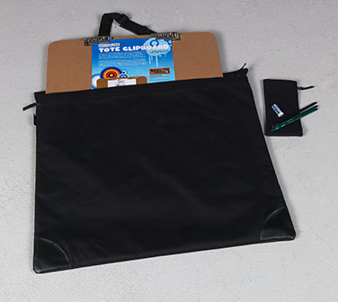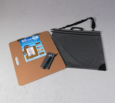 The Martin® Leonardo Artist Drawing Kit pairs a sturdy, tempered Masonite clipboard with our popular soft-sided nylon portfolio to create this Back-to-School essential. The drawing clipboard measures 22”x25” and has two (2) unique “z-locking” clips as well as an over-sized rubber band to secure artwork. The 24”x27” portfolio, specially sized to accommodate the generously large drawing board, features reinforced corners, two exterior zippered compartments, a comfortable handle and removable shoulder strap. This kit also includes a handy removable tool bag with three (3) assorted drawing pencils and an artist eraser.