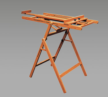 rubbed with Tung oil for a warm beautiful finish. This easel is ideal for oil, acrylic and display in any of the upright and angled positions or as a watercolor easel when flat. While slightly smaller than the Bologna, the Pompei will still hold canvases up to 60” and can be used as workstation or table for still life displays when flat.