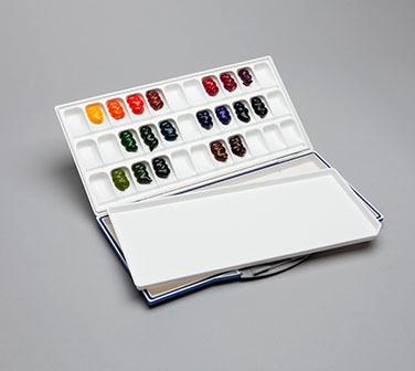 The Mijello® Fusion Series Watercolor Palettes are a convenient and practical way to store paints, as the airtight and leak-proof chamber keeps paints fresh for weeks. Each model is equipped with a special sealing ring that locks in moisture to create a barrier from leakage, making it an ideal choice for the traveling artist. The interior features a generous arrangement of thirty-three (33) slanted mixing wells, an uninterrupted lid for additional mixing and a separate tray fitted into the top lid, which can be removed for easy clean-up. The outer case is richly finished and as with all Mijello® watercolor palettes, there is no color discrepancy between palette and paper.