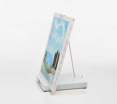 The Prima® Travel Easel uses a distinctive patented design for its unique adjustment mechanism. This easel utilizes an upper canvas support with an expandable tension cord, which secures to the back of the easel. The base of the easel provides a grooved channel so as to secure work. Lightweight, durable and compact, this easel can accommodate canvases and panels up to 36” yet its compact design fits conveniently into a backpack or briefcase.