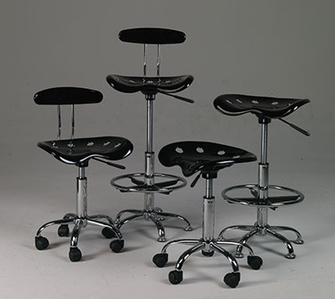 In the newest addition to our seating category, the Martin Dezign Line Retro Seating Series merge a trendy tractor-style seat with sparkling contemporary chrome accents. The contoured high-gloss seat easily adjusts with a fingertip controlled airlift mechanism and is available with an optional curved back rest for additional support. The drafting height model adjusts in height from 22”-30”, includes a 15” chrome foot ring and sets stationery on a five-star safety base equipped with protective foot pads. The desk height version also includes the five-star safety base but offers mobility with double-hooded multi-surface casters and will adjust in height from 17”-23.5”.