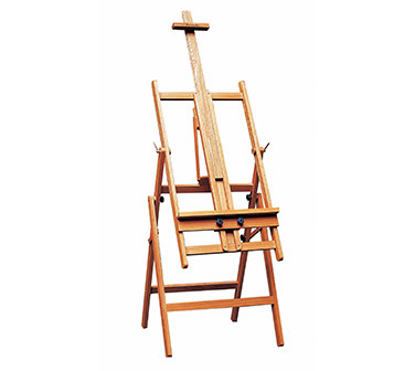rubbed with Tung oil for a warm beautiful finish. This easel is ideal for oil, acrylic and display in any of the upright and angled positions or as a watercolor easel when flat. While slightly smaller than the Bologna, the Pompei will still hold canvases up to 60” and can be used as workstation or table for still life displays when flat.