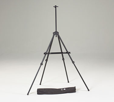Created using a patented design, our Quattro 4-Legged Aluminum Easel features heavy-duty aluminum construction and an ultra-stable design. Each leg is equipped with non-skid rubber feet and fully retractable spikes allowing it to be used as a field, tabletop or display easel. The Quattro is as stable as a table, folds easily into a compact size and fits into a convenient storage bag with shoulder strap. This easel is perfect for indoor or outdoor use and will accommodate a canvas up to 46” in height.