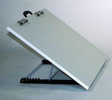 The Scheewe® Portable Art Studio is perfect for travel and home studios as it provides a smooth drawing surface anywhere! The ultra-lightweight core is covered in a non-porous melamine laminate and features the five (5) position Adjusto-stand, a Martin® exclusive. Work in progress can secured with dual upper clips and the comfortable handle provides for easy transport.