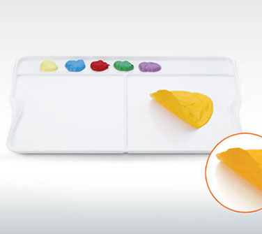 The Fredi Weber Peel-Able Tray Palette is constructed of sturdy, high-impact plastic and particularly well suited for oils and acrylics, though exceptionally compatible with all media. Its unique composition allows acrylic to peel off the surface and oils to be wiped off and cleaned easily with a damp cloth. It has three (3) unobstructed areas in an overall 12.75” L x 8.875” W surface with a slight lip to prevent paint from migrating over the edges. Designed to be comfortably held by both left and right handed artists. Unlike conventional butcher trays, which can bow, the Fredi Weber Peel-Able Tray Palette provides a flat and reliable surface as well as four (4) non-skid bumpers to keep palette from sliding.