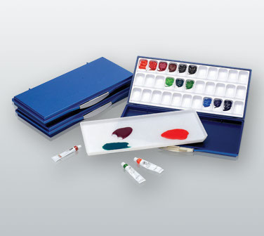 The Mijello® Fusion Series Watercolor Palettes are a convenient and practical way to store paints, as the airtight and leak-proof chamber keeps paints fresh for weeks. Each model is equipped with a special sealing ring that locks in moisture to create a barrier from leakage, making it an ideal choice for the traveling artist. The interior features a generous arrangement of thirty-three (33) slanted mixing wells, an uninterrupted lid for additional mixing and a separate tray fitted into the top lid, which can be removed for easy clean-up. The outer case is richly finished and as with all Mijello® watercolor palettes, there is no color discrepancy between palette and paper.