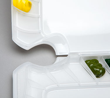 • Large, uninterrupted mixing areas in lid with dual spaces in base